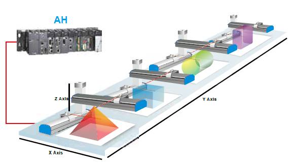 AH500的運動控制功能,可實現(xiàn)任意三軸直線插補、任意兩軸圓弧插補、及任意三軸螺旋插補與連續(xù)插補功能,透過臺達DMCNET高速通訊網(wǎng)絡(luò)架構(gòu),更可達到1ms的指令周期內(nèi)12軸同動或4組3軸同動插補功能。無論是復(fù)雜的過程控制或是精密的運動控制需求,都能透過AH500來實現(xiàn),有效應(yīng)用于各種產(chǎn)業(yè)機臺,如建材機,經(jīng)編機,食品包裝機等等。